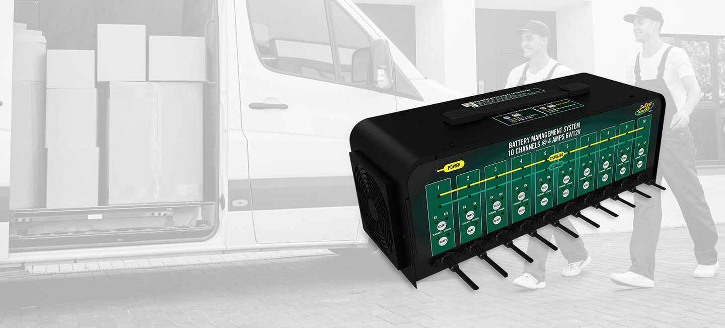 With ten chargers to accommodate various battery types in one unit, the Battery Management System can charge and maintain up to 10 batteries simultaneously.