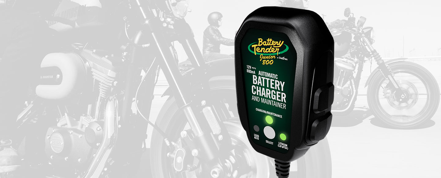 Ideal for motorcycles and powersports vehicles, the Junior 800mA charges lithium or lead-acid batteries, and can switch between AGM, lead-acid, GEL, flooded, and lithium (LifePO4) batteries.